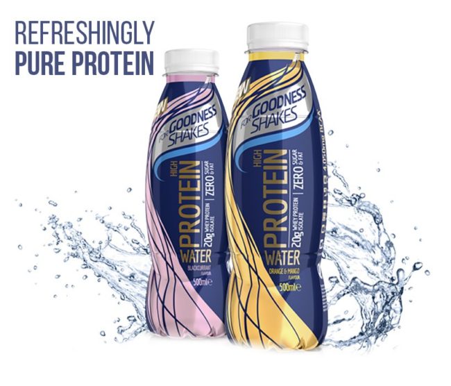 For Goodness Shakes Protein Water is a new ready-to-drink, low calorie, high protein soft drink, containing 20g of Whey Protein Isolate per bottle.