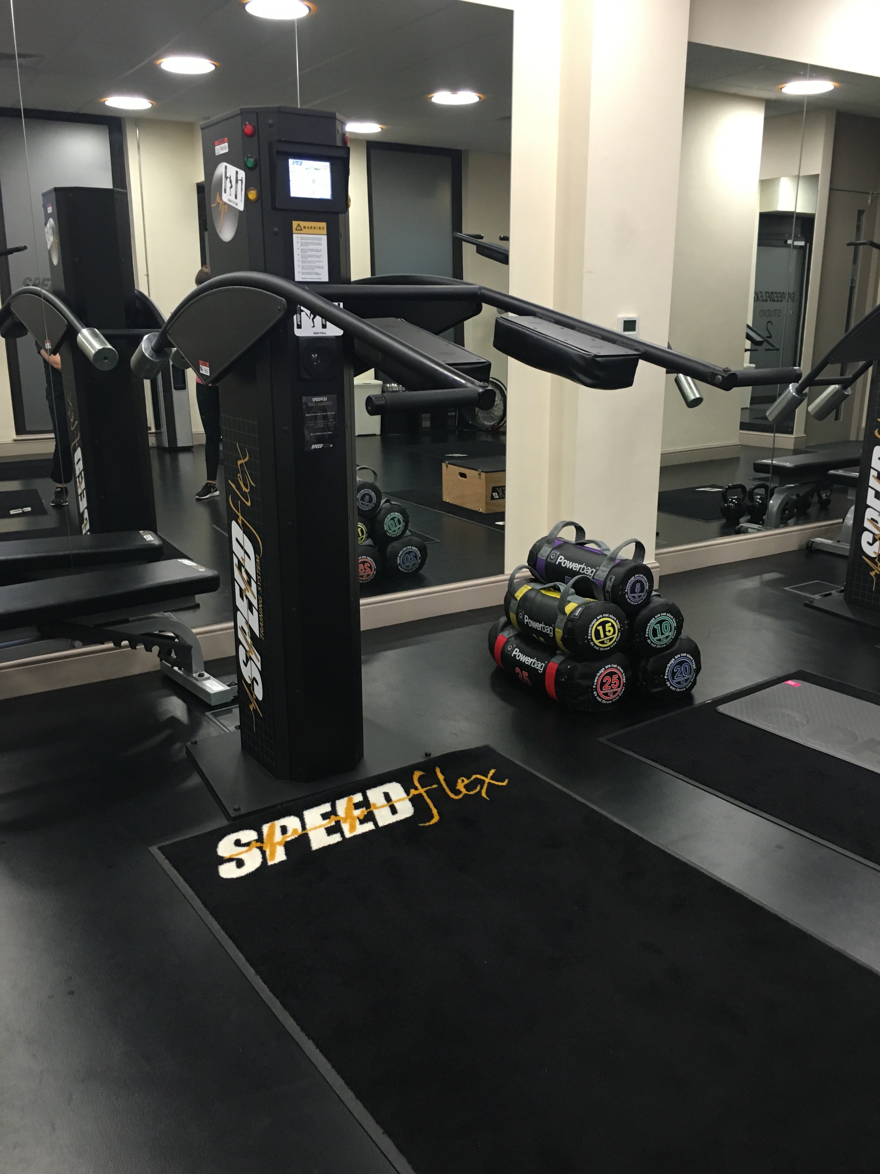 The induction is simple and you get a go on all the machines. The machines themselves are mostly the same – each machine has bars that can be pushed up and down, the difference mainly is the exercise the trainer allocates to each one to create the circuit. All the Speedflex machines have no weights, they use your own force to generate resistance… so if a bodybuilder is ahead of you in the circuit nothing needs to be adjusted to the machine when you move onto it and you can just keep going with your workout! Heart rates are shown up on a screen so you (and the trainer) can monitor how hard you are pushing yourself and it is pretty motivating as everyone else can see you slacking!