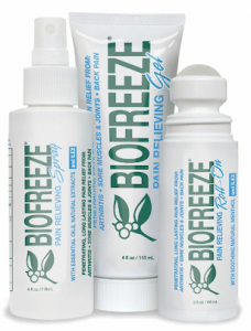 Cryotherapy products are classified as topical analgesics, which work through a ‘counter irritant’ mechanism. This means that the Isopropyl Alcohol in Biofreeze creates a sensation that overrides pain signals to the brain. This process is known as ‘Gate Control Theory’, where nerve impulses from one stimulus block the nerves containing pain signals to the brain. The cold sensation also causes Vaso-constriction which aids in the prevention of injury by preventing swelling and irritation. It is important to remember that cryotherapy only provides temporary pain relief and is not a long-term solution if injury does occur.